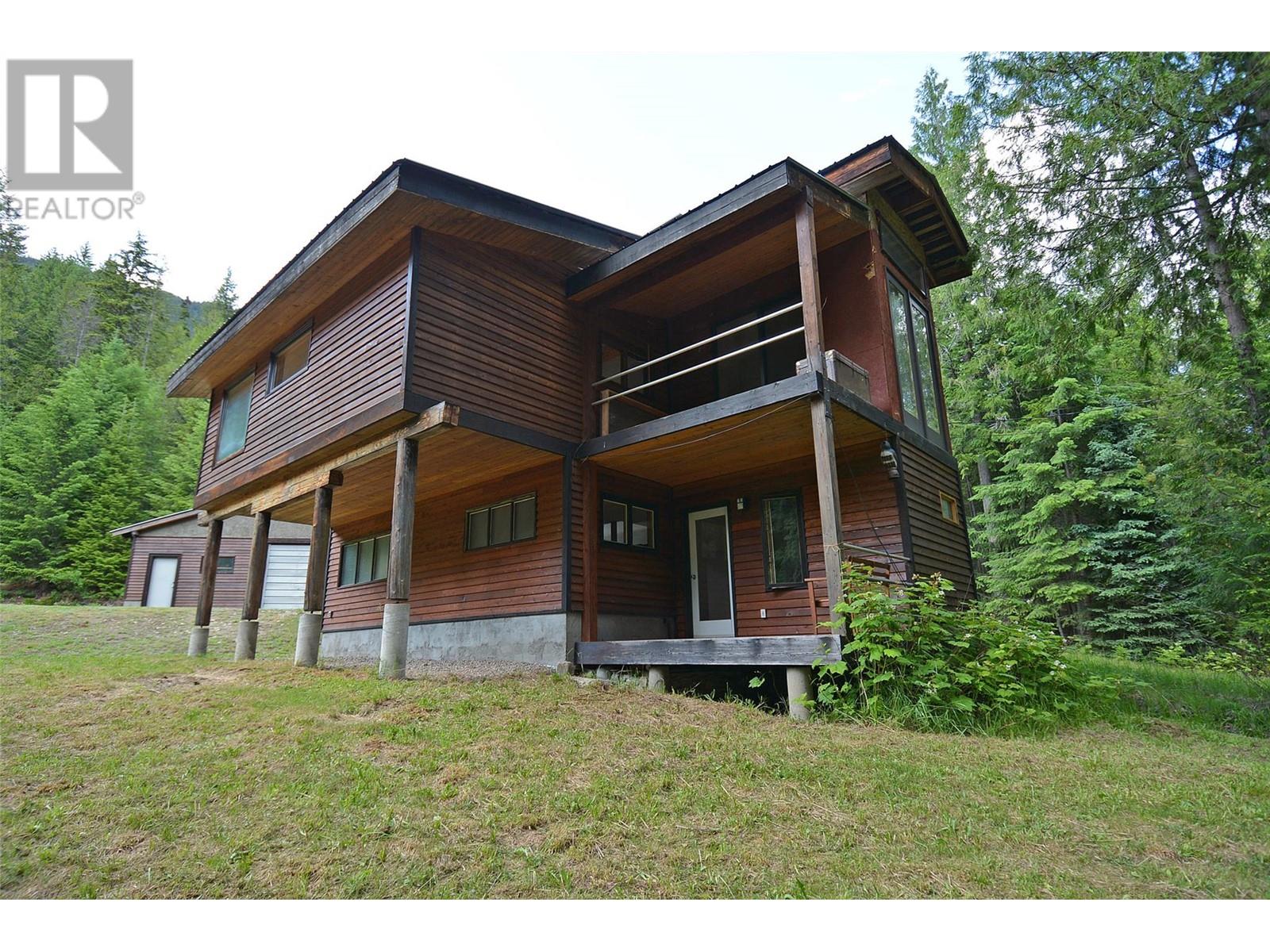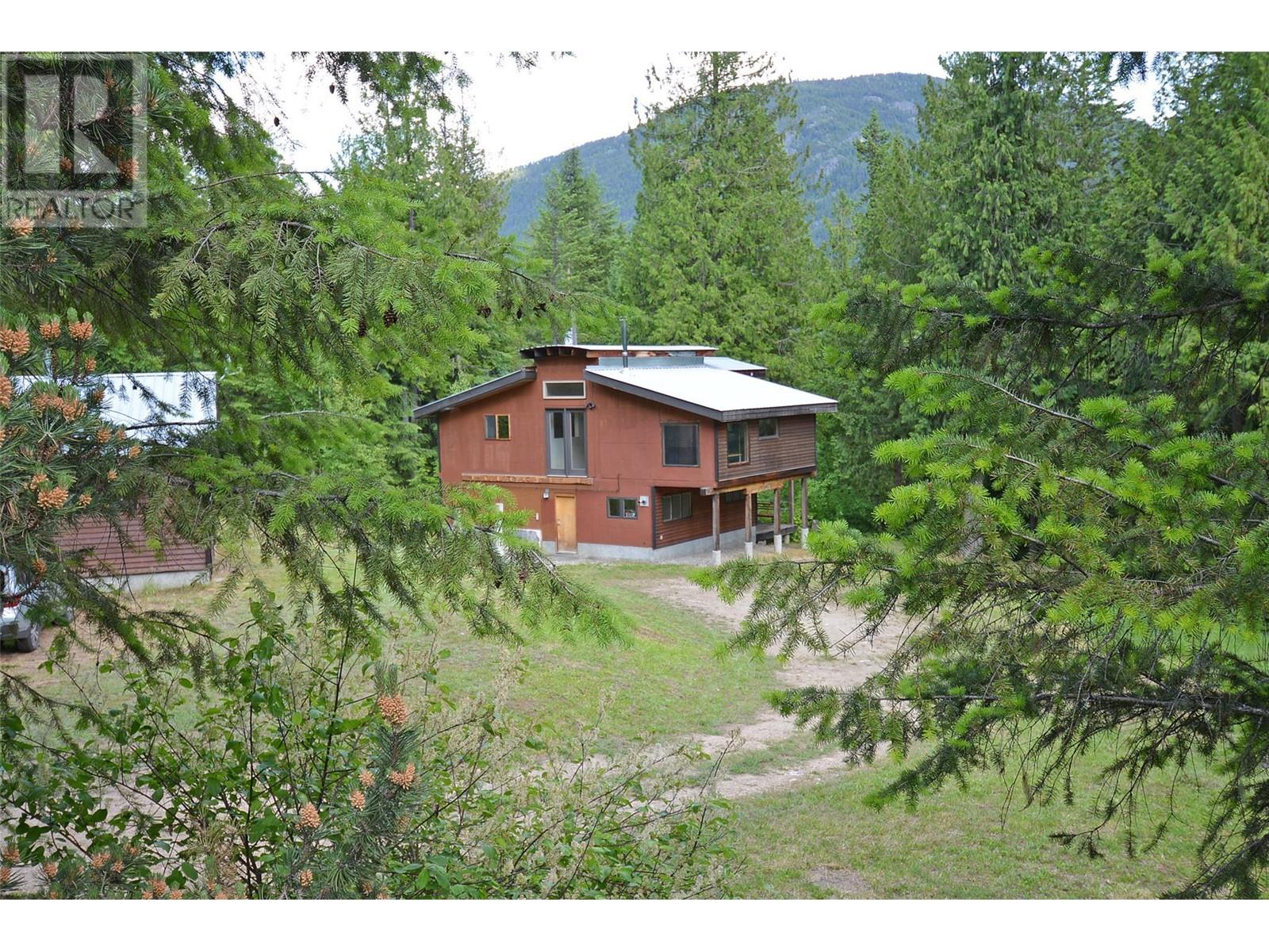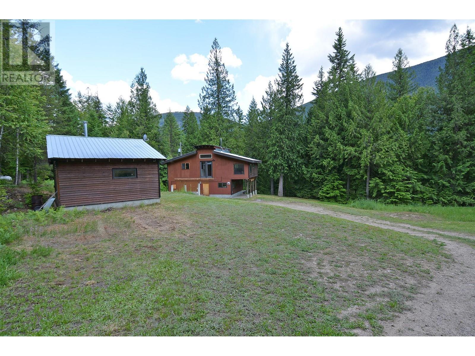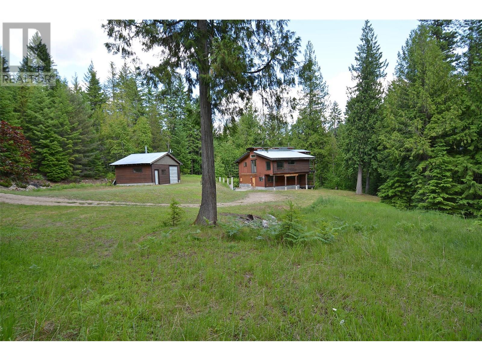 Tucked away in a serene, forested setting, this unique property offers two separate titles and a rare opportunity for privacy and further potential. The first parcel is 3.23 acres and features a charming two-storey home full of Kootenay character. Warm wood flooring, abundant windows, and cozy living spaces create an inviting atmosphere. Currently a one-bedroom home, there's potential to convert it into two or more bedrooms. Outside, you'll find a small one-bay shop and an incredible large 30x50 ft shop with plumbing and electrical. The surrounding yard is open and usable. The second title is 9.41 undeveloped acres of forested land—a blank canvas for your future plans. Both properties have water licences. (id:4069)