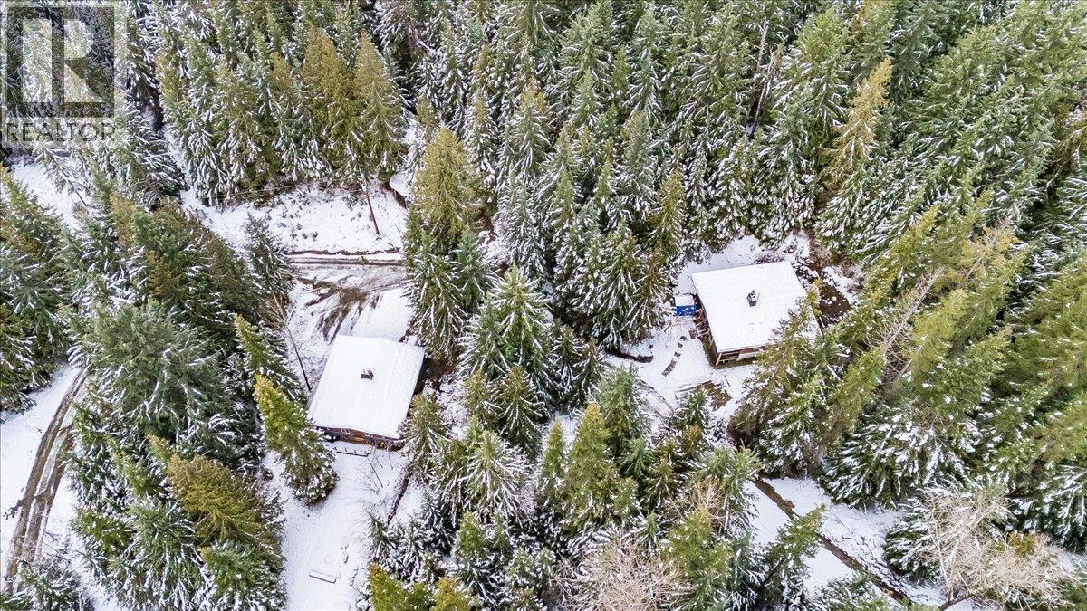 2 HOMES on nearly 40 acres of commercially zoned land just outside of Ymir, BC! This unique property is outside the foreign buyer ban and offers incredible potential for further development, with an oversized septic system already in place and an artesian well supplying fresh water. Two well-built, two-bedroom homes feature concrete floors with in-floor heating, wood stoves, and living roofs that blend beautifully into the forested surroundings. Multiple internal roads provide access throughout the property, which includes a mix of flat and gently sloped terrain, ideal for expansion or a variety of uses. Easy access from the main road and just minutes from world-class recreation, including Whitewater Ski Resort, Red Mountain Resort, Kootenay Pass, the Salmo River, hiking trails, and the Rail Trail. There is a sauna and storage shed as well. Formerly operating as Kootenay Huts, this is a rare opportunity to live and build your dream business in the heart of the Kootenays. (id:4069)
